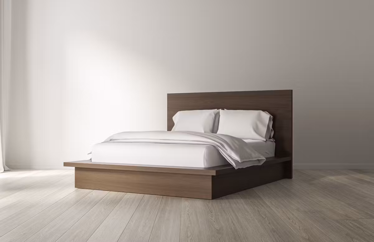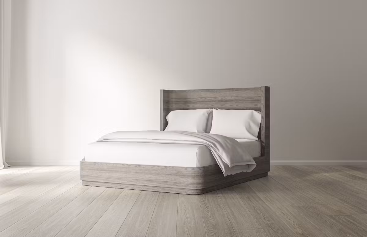 The Saatva Wooden Bed Collection represents the next evolution in bedroom furniture, crafted to complement a variety of styles with finishes that reveal the natural beauty of American Oak. Available in Natural Oak, Brown Oak, Grey Oak, and Black Oak, these bed frames are hand-finished with meticulous care, showcasing crown-cut oak veneers that add a tactile, textured depth to each piece. Constructed with sustainably sourced, kiln-dried hardwood, each frame is built to last and designed to provide exceptional support without the need for a box spring or foundation.