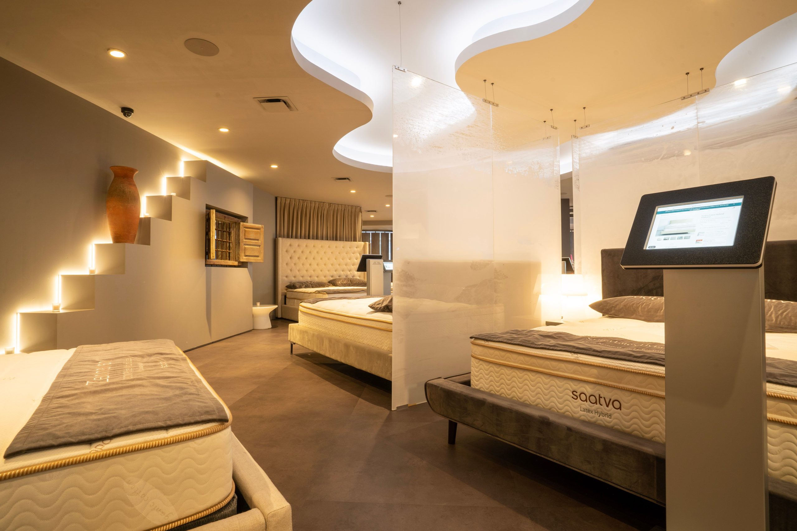 Viewing Room guests are invited to explore and experience Saatva’s full range of luxury sleep products, including its five eco-friendly mattress types in all 11 comfort levels, organic cotton sheets and pillows, and designer bed frames. Under a blue-sky ceiling, surrounded by natural materials and Mediterranean colors, visitors can see for themselves what makes Saatva the best-reviewed online luxury mattress brand. iPads and information stations throughout the space allow guests to interact with Saatva’s collection at their own pace, with trained Sleep Guides available to assist and answer questions.
