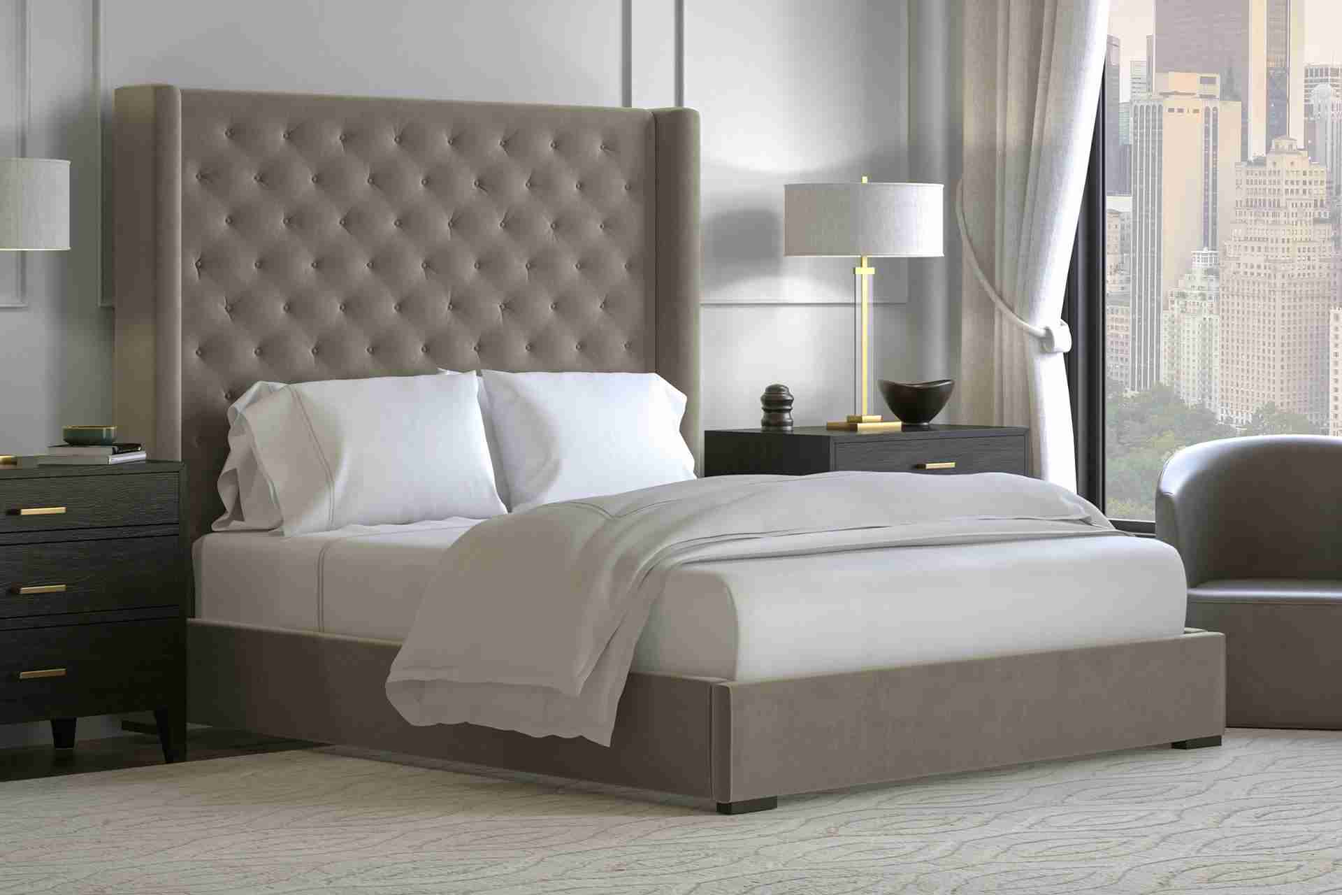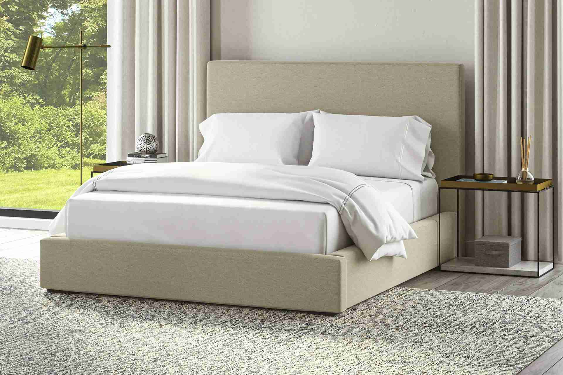 As striking as the Greek isle it’s named after, the Crete platform bed features an oversized sculptural silhouette that makes a statement. It is fully upholstered in a selection of luxurious fabrics, including a limited-edition Ivory Bouclé, and boasts recessed feet for a floating effect. No foundation or box spring is required.