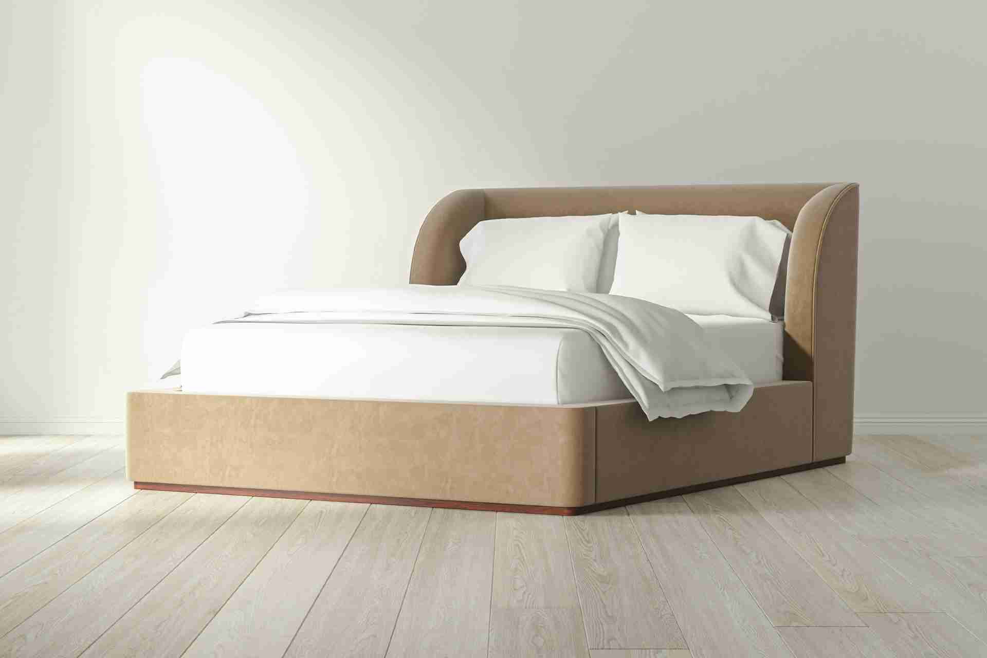 Named after the charming coastal town in the South of France, the Cassis platform bed frame exudes relaxed sophistication. Its organic, sculptural lines and plush headboard invite indulgent comfort, while its recessed wooden plinth base adds a grounding element to the design.